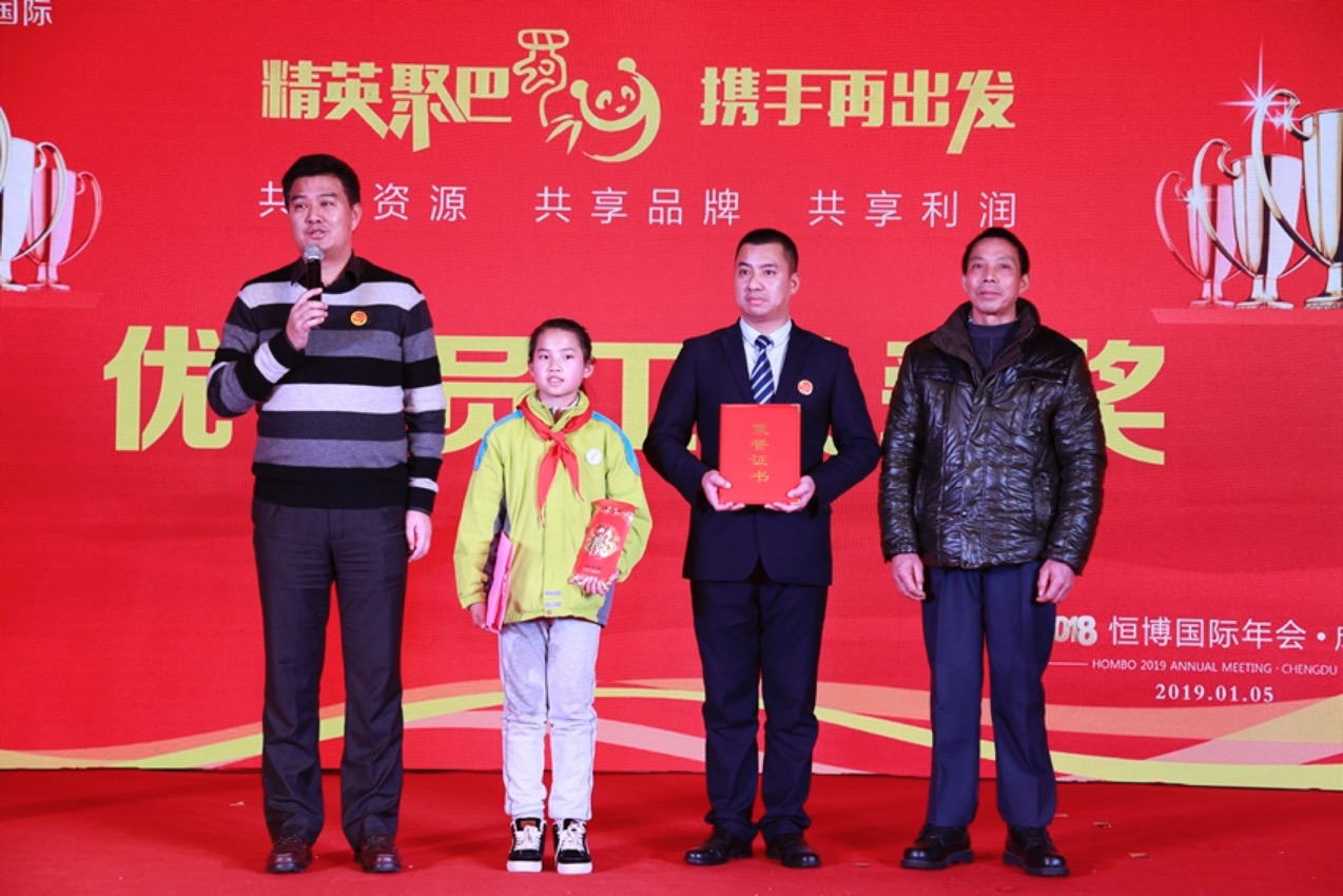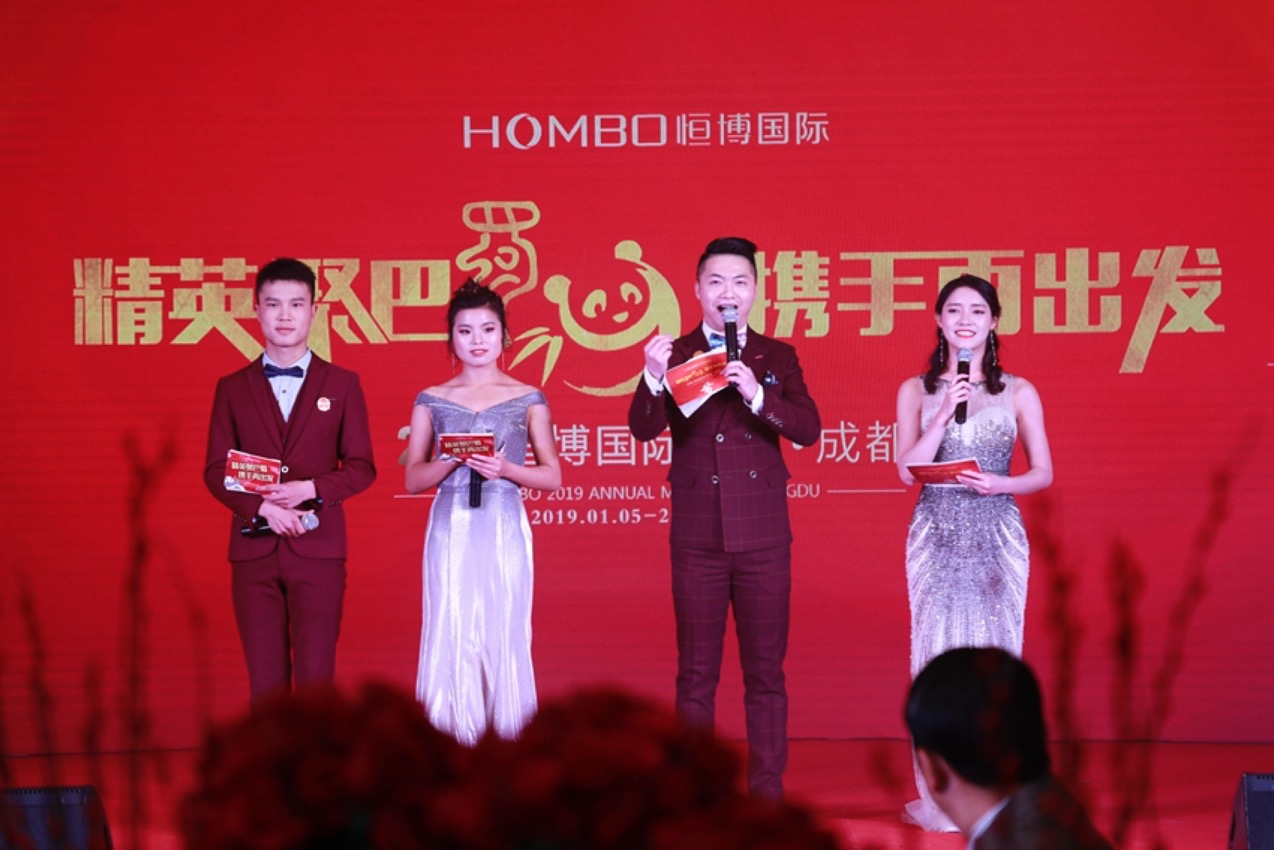 狗护千祥追日去,我们作别精彩纷呈的2018, 猪拥万福驾云来,我们迎来前程似锦的2019。 精英聚巴蜀 · 携手再出发, 恒博国际2019新春年会,如约而至! 新的格局,新的方向。 董事长在年会现场为全体同仁分享了未来三十年影响世界的二十大科技趋势, 恒博国际的六大板块涵盖其中五项。 我们坚信,新的一年,在董事长的带领下, 秉承“共享资源、共享品牌、共享利润”的宗旨。 始终坚守实业投资,打造自我品牌, 全体恒博人将继续敢打敢拼、奋进拼搏,不断创造佳绩。 优秀表彰,恒博荣光! 求真务实、与时俱进。 是昨日奋发有为的基石, 也是明日辉煌灿烂的动力。 士气高昂、斗志昂扬, 感谢成都分公司戚向东经理团队为我们带来的精彩的表演, 过去一年,我们孜孜进取,不思疲倦; 新的一年,我们昂首挺胸,大步向前。 恒博国际成都年会暨智能机器人发布会,引领智能安防时代。 智能安防蓝海初现,恒博机器人崭露头角; 恒博机器人公司打造出海口、拥抱新机遇。 科技让我们的生活更快捷,让数据更精确,让工作更简单! 天地之道,恒久而不已,广博而致远! 最美恒博梦,奔向远方寻找我们魅力的梦。 恒博的今天很精彩,恒博的明天更美好! 在恒博,有这么一批优秀的员工, 把困难踩在脚下,为家庭撑起一片天。 有爱心、有责任、能担当, 有他们在,恒博必能实现永续经营基业长青的“恒博梦”, 董事长亲自为蒋禹队长颁发的本年度“优秀员工关爱奖”, 向蒋禹颁发1.8W关爱奖项,并以个人的名义再向蒋禹患病的母亲捐赠5W爱心善款。 上善若水,大爱无私。 2019年已经到来,在新的一年里,恒博国际将秉承“共享资源、共享品牌、共享利润”宗旨,在董事长的带领下,做中国最诚信的实业投资者,建设有爱心、有情感、负责任、可持续经营发展的公司。 我们以蓬勃的朝气、昂扬的锐气、无畏的勇气,开拓创新的精神,谱写恒博国际新一年更加辉煌灿烂的新篇章,我们前进的脚步永远不会停驻,我们的激情永远不会褪去,我们永恒的主题不会改变。